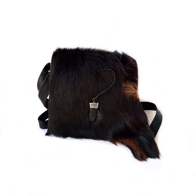 Elegante y original bolso bandolera de pelo con asas que se adaptan.